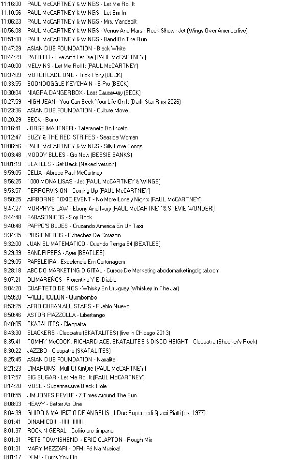 ORACULO: Tributo a BECK na edição fev2026 do P.R.F. Tribute Series / LUCIO MAIA - Fetish Motel / MATTHEW RYAN JACOBS - Never Tear Us Apart (INXS) / DRAGON CHOPSTICK - Yoshimi (FLAMING LIPS) / SNACKTIME - Fly Like An Eagle (STEVE MILLER BAND) / DOWN - Right Place, Wrong Time (DR. JOHN) / PARKER WOODLAND - Police On My Back (EQUALS) / KING ULTRAMEGA - Preaching The End Of The World (CHRIS CORNELL) / RINGO STARR - It's Been Too Long
