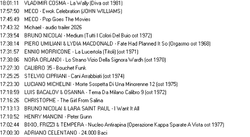 ORACULO: LOAH - Dancing In The Moonlight (THIN LIZZY) / EBBA - Uh-Oh Love Comes To Town (TALKING HEADS) / PETER GABRIEL - Put The Bucket Down (Bright-Side Mix) / MASSIVE EGO + BOY GEORGE - Broken Tomorrow / SMUSH - Don't Know Why (NORAH JONES) / DOUBLE EYELID - No Control (DAVID BOWIE) / LANCE FERGUSON - Cold Bear / SEU JORGE - Shock / SUPLA & OS PUNKS DE BOUTIQUE + JYRKI69 & BAZIE - Trip Scene / SUZI QUATRO - Freedom